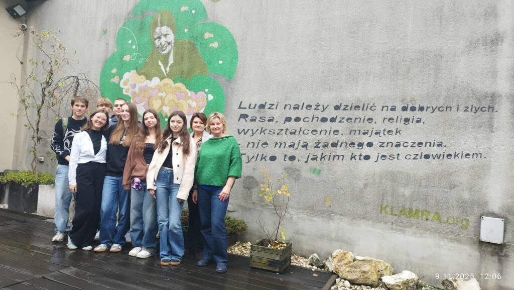 Nasi uczniowie klas 3 – Marysia Jackiewicz, Weronika Kolasa, Szymon Krzyżanowski-Książek, Emilia Kuchta, Franek Reda, Daniel Różyński, Adrianna Winiarska – przy wsparciu anglistki Ewy Ogorzelskiej i polonistki Justyny Radomińskiej od grudnia 2024 r. do listopada 2025 r. realizowali zadania międzynarodowego projektu iMemory, który z okazji 80. rocznicy zakończenia II wojny światowej zapraszał młodych ludzi z Niemiec, Polski, Serbii, Chorwacji i Ukrainy do eksplorowania lokalnej historii i refleksji nad historią Żydów oraz jej obecnym znaczeniem. Projekt prowadzi Centropa (Centrum Badań i Dokumentacji Europy Środkowej) (https://www.centropa.org), organizacja, której polskim partnerem jest Żydowskie Muzeum Galicja z Krakowa (https://galiciajewishmuseum.org), które zaprosiło nas do projektu. Byliśmy jedną z dwu polskich szkół biorących udział w działaniach.