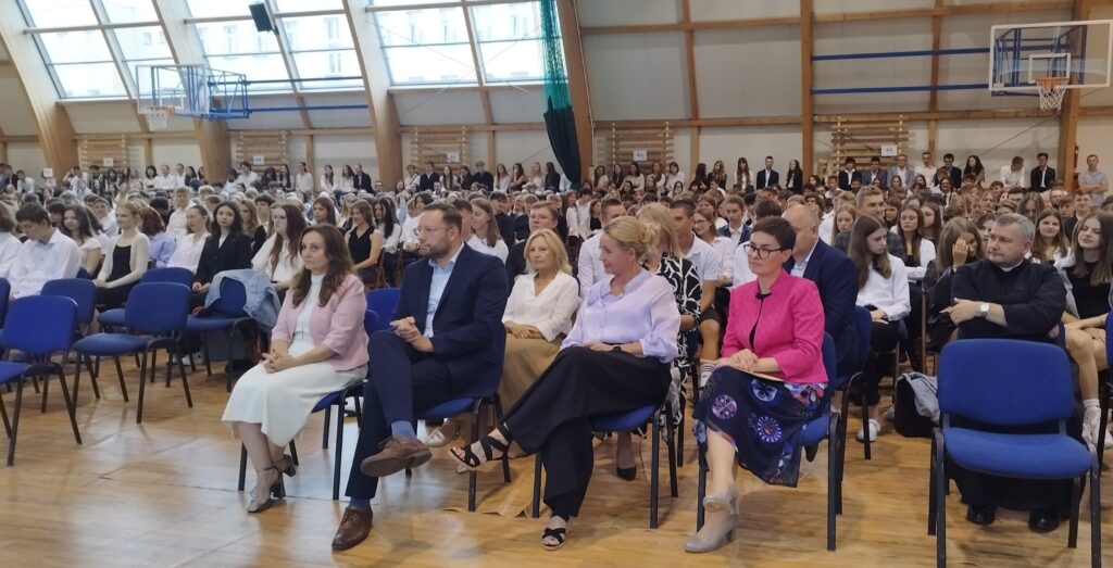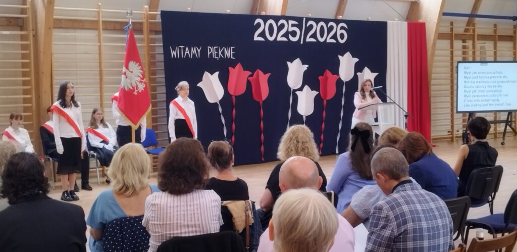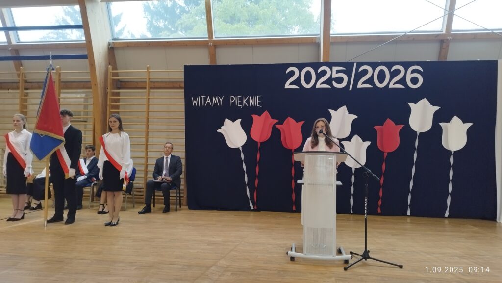 Uroczyście rozpoczęliśmy kolejny rok szkolny 2025/2026. Dyrektor Beata Chromińska w przemówieniu do uczniów przypomniała, że oprócz zdobywania ocen ważne jest dobre poznanie siebie i rozwijanie swoich pasji. Szczególnie ciepło powitaliśmy naszych nowych uczniów – pierwszoklasistów. Cieszymy się, że aż tylu młodych ludzi chce rozwijać się i uczyć w naszej szkole. Gościem na uroczystości był członek Zarządu Powiatu Mińskiego pan Piotr Ładno, który również serdecznie powitał społeczność szkolną.