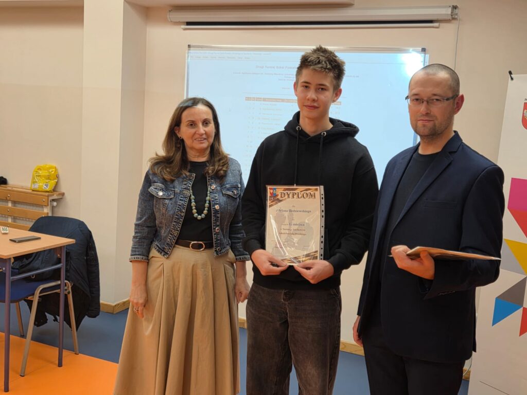 Wtorek, 9 grudnia 2025 był mini-maratonem szachowym w naszej szkole. Na drugą edycję Turnieju Szachowego Szkół Powiatu Mińskiego pod patronatem Starosty Mińskiego zgłosiło się 42 uczniów z dwunastu szkół podstawowych i ponadpodstawowych. Po kilku godzinach rywalizacji wyłoniono zwycięzców w dwóch kategoriach oraz najlepszych zawodników Turnieju: