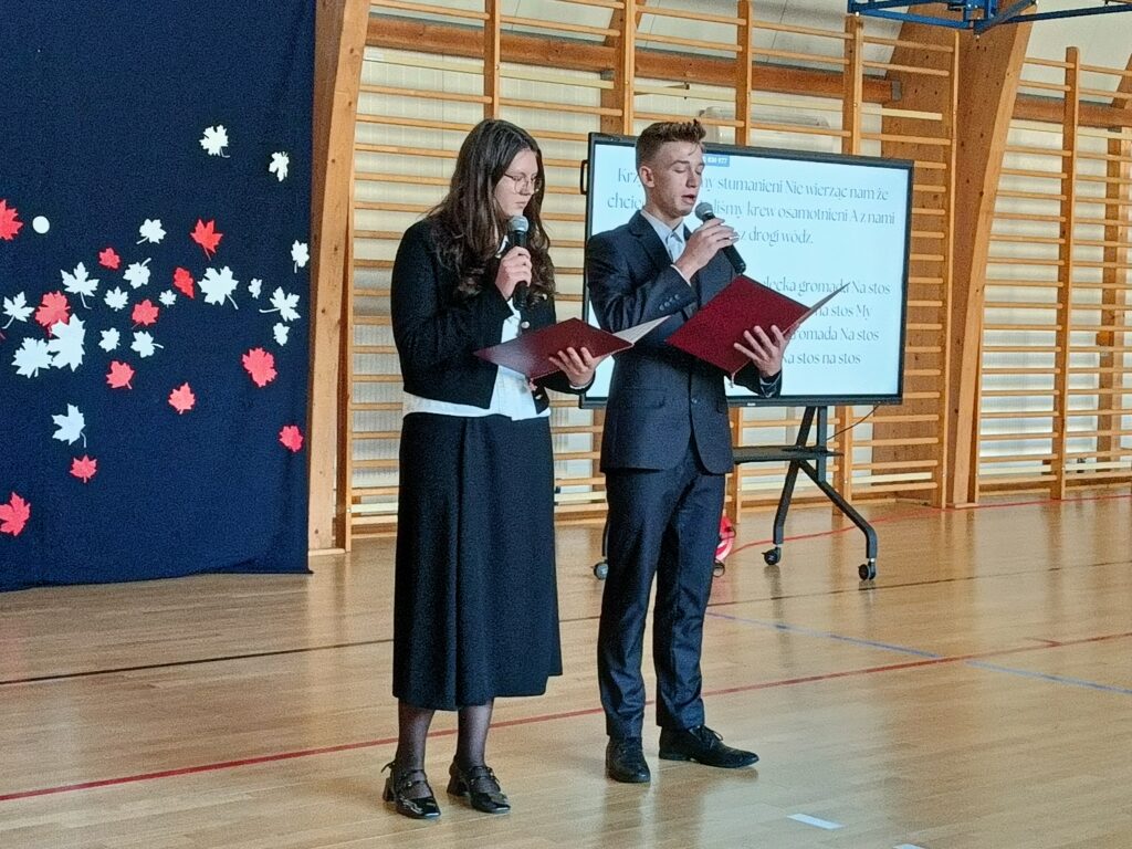 W piątek, 7 listopada 2025 r., obchodziliśmy uroczyście Święto Niepodległości. Wszyscy uczniowie wraz z nauczycielami zebrali się na hali sportowej, aby uczestniczyć w apelu przygotowanym przez klasę 2d z opiekunami. Naszą tradycją jest także uczestnictwo w akcji Ministerstwa Edukacji „Szkoła do hymnu” – o godzinie 11.11 uroczyście odśpiewaliśmy Mazurek Dąbrowskiego. Cieszymy się, że mogliśmy razem świętować w tym ważnym dniu.