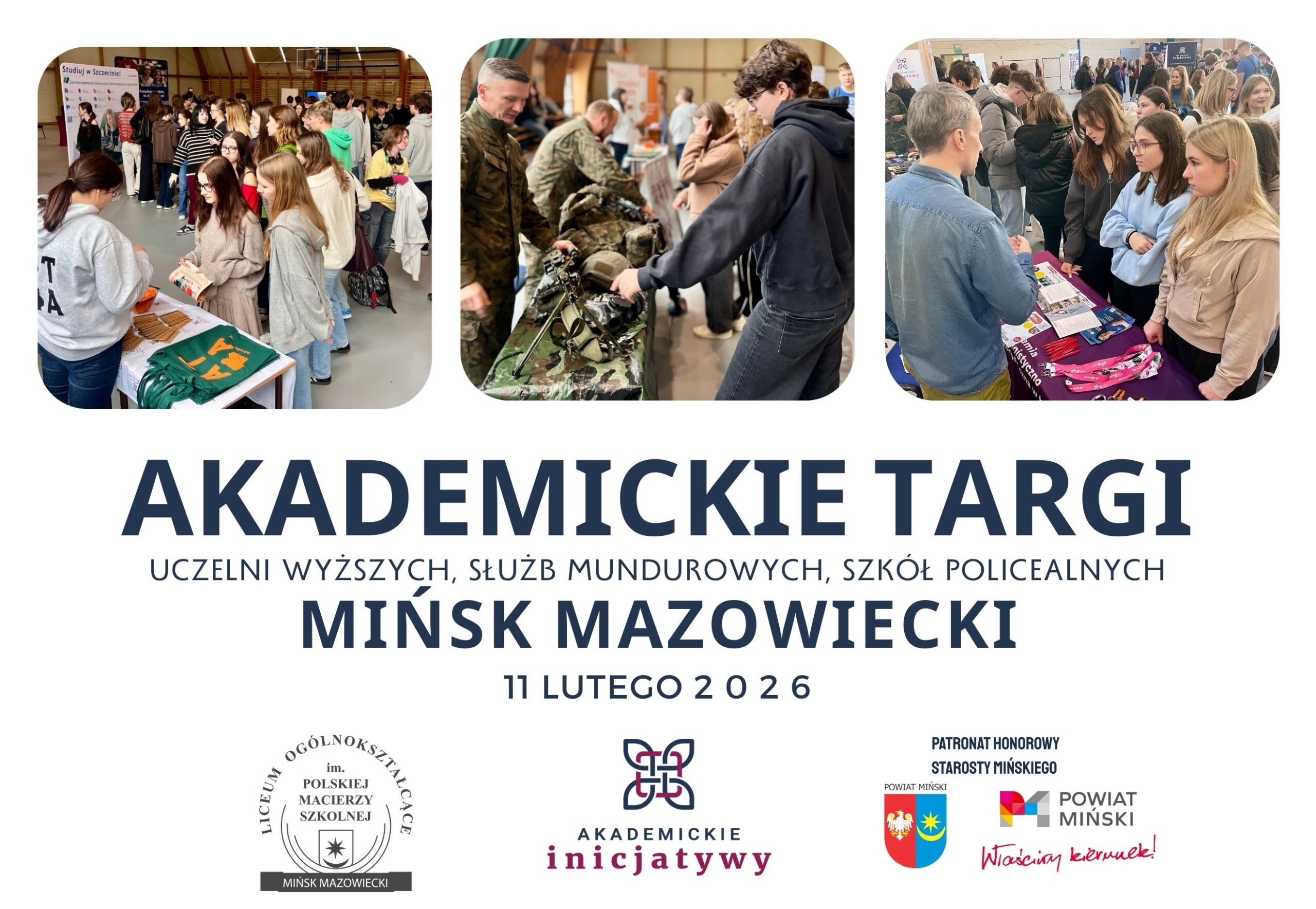 W dniu 11 lutego 2026 roku hali sportowej Liceum odbyły się Regionalne Akademickie Targi (uczelni wyższych, Służb Mundurowych oraz Szkół Policealnych), zorganizowane przez Akademickie Inicjatywy w ramach cyklu wydarzeń wspierających młodzież w świadomym planowaniu dalszej ścieżki edukacyjno-zawodowej. W wydarzeniu udział wzięło około 1000 uczniów szkół ponadpodstawowych z Mińska Mazowieckiego, głównie maturzystów stojących przed wyborem dalszej … Dowiedz się więcej